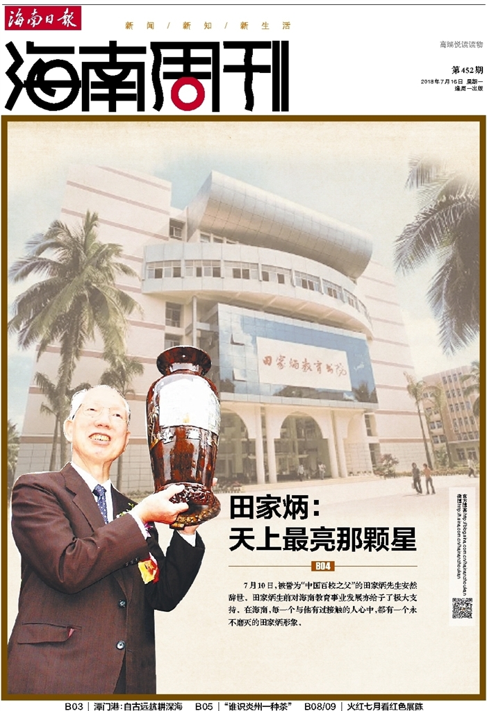 7月10日,被誉为“中国百校之父”的田家炳先生安然辞世。田家炳生前对海南教育事业发展亦给予了极大支持。在海南,每一个与他有过接触的人心中,都有一个永不磨灭的田家炳形象。