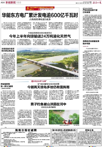 海南日报 本省新闻综合 004 2018-07-191 2018年07月19日 星期四