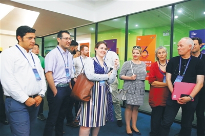 图为代表团成员在海口复兴城创新创业产业园参观考察。