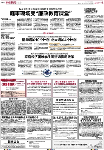 海南日报 本省新闻综合 004 2018-07-211 2018年07月21日 星期六