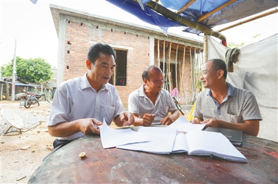 “雨停了,屋顶上的落叶得赶紧清理了,不然起风刮得满村跑,搞不好要扣分了。”7月21日17时许,万宁市北大镇尖岭村刚刚结束一场大雨,贫困村民黄宏程就连忙招呼弟弟拿上工具爬上了新改建的平房房顶,清理被风吹到屋顶的树枝落叶。