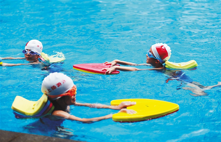 “学校给孩子布置了游泳‘暑假作业’,我就提前带他过来学游泳。”一位家长告诉记者,孩子学得很快,估计不出10天就可以达标。
