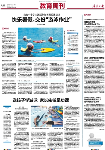 进入暑假以来,我省校外游泳培训班生意红火,这些培训班大多位于综合性体育场和大型小区内。海口游泳教练曹衍表示,由于培训需求急剧上升,游泳教练几乎每天都要加班。