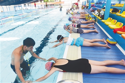 “很多家长认为,孩子学游泳,上私教课效果更好。我对此并不认同。孩子上私教课还是大班课,应因人而异别盲从。”邢志阳告诉记者,大班课上,一个教练大约要指导10名左右学生。教练先讲解示范,再陆续纠正孩子们的不规范动作。当教练纠正其他孩子的动作时,在旁边观看的孩子可以反思自己的动作。对于怕水的孩子来说,私教课可能更合适。教练“一对一”指导,能让孩子更有安全感。