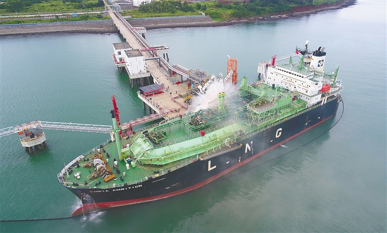 7月21日,马村港海南中油深南能源有限公司LNG(液化天然气)码头,海口海事局组织开展LNG船舶天然气泄漏、海上溢油和消防应急联合演练。演练科目包括消防灭火、事故报告、伤员救助、海上泄漏甲板污油水清除等。