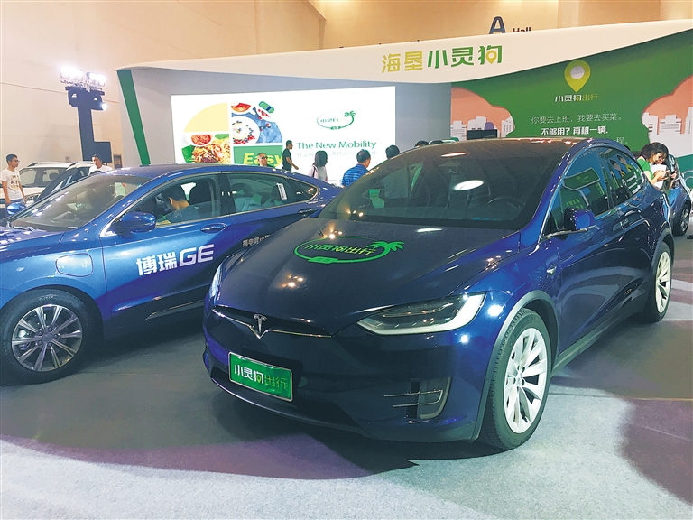 图为“海垦小灵狗出行”提供的车型之一——特斯拉,吸引了许多市民现场体验。