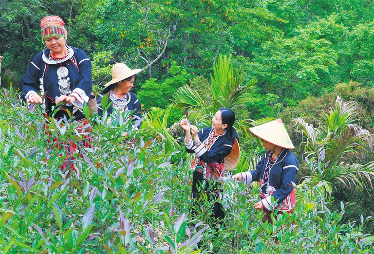 “自2014年9月种下茶树后,一亩地的保底收入就有3000元,今年至少能挣上个七八千元!”村里首批种茶户符莲娟笑着说,她已经靠种茶摘掉了贫困户的帽子。除了种茶,还有农户利用农耕空余时间参与加工、包装和茶园管护等工作岗位,挣得一份工资。让村民津津乐道的是,海南岛早春茶“开采节”在村里举办,热闹非凡,他们亲手种出的茶,经过公司的精美包装,走进海南的高端酒店,走向岛外……