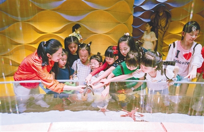 据同程旅游发布的《2018暑期亲子游与研学旅行消费趋势报告》,今年暑期,城市居民家庭中有研学旅行计划的比例接近10%,相比去年同期提升了近一倍。连日来,三亚·亚特兰蒂斯度假区游客接待量及入住率持续走高,大量家庭游客及研学旅行团前来观看海洋生物。 本报记者 武威 摄