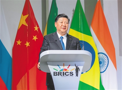 习近平最后强调,金砖合作的历程,正是五国携手勇攀高峰、不断超越的历程。只要金砖国家携手同心,就能不断攀越险峰峭壁,登顶新的高峰、到达新的高度,为人类和平与发展的崇高事业作出新的更大的贡献!
