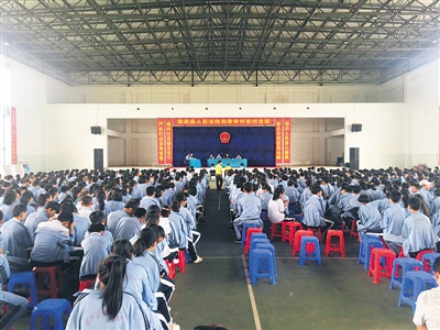 今年6月22日,临高县人民法院将一起毒品犯罪案件放在校园审理,为临高县第二中学近千名师生上了一堂生动的“禁毒课”。
