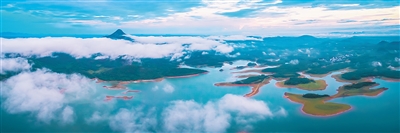 入夏以来,充沛的雨量,让松涛水库群山峻岭云雾缭绕,宛若人间仙境,令游人心旷神怡、流连忘返。 特约记者 吴文生 摄