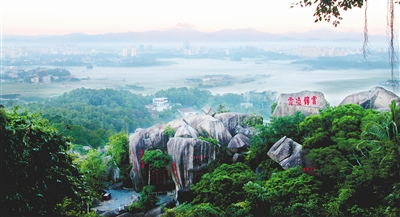 “海南第一山”东山岭海拔184米,明代万州牧曾光祖题写了“海南第一山”几个大字,由工匠镌刻在东山岭上,至此这一名号便成为东山岭文化旅游区的代名词。