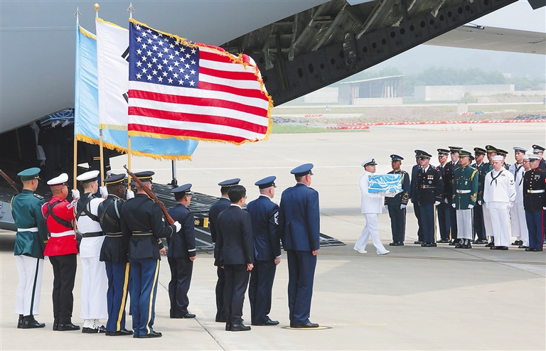 驻韩美军接收 朝鲜归还的美军士兵遗骸