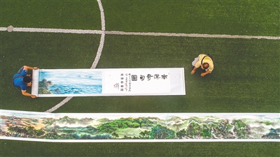 画卷完成后,欣喜之余的何牛又有点发愁:这幅画实在太大了,应该如何向观众展示呢?为了破解这个难题,何牛的学生将画作带到南京制作了微缩复制版本,长度不变,宽度缩小到30厘米。