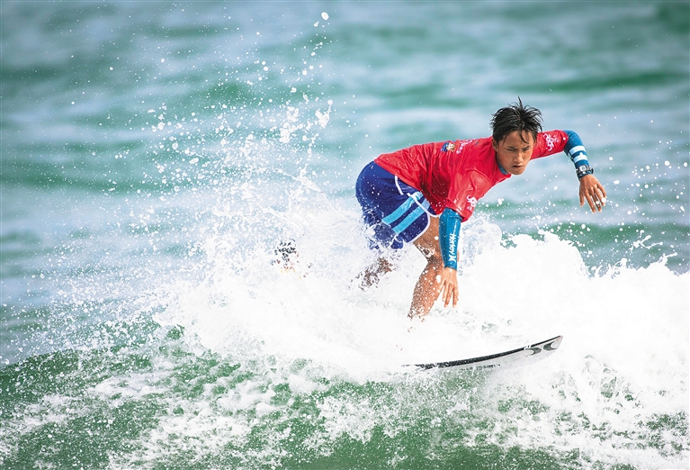 7月30日上午,海南省第五届运动会冲浪项目在万宁日月湾开赛,全省8支参赛队伍共62人展开角逐。比赛为期4天,设有个人项目与团体项目。据介绍,本届运动会分竞技体育项目15项和群众体育项目48项,此次冲浪比赛是第一次被列入海南省运动会项目。
