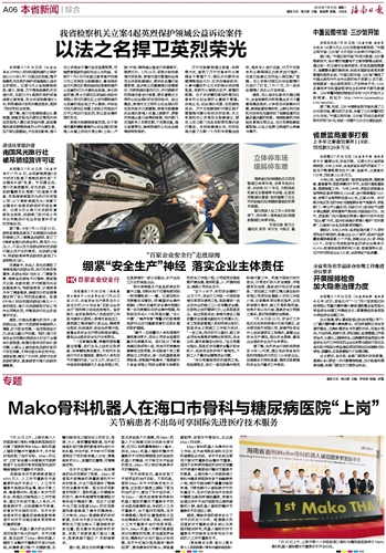 Mako骨科机器人在海口市骨科与糖尿病医院“上岗”