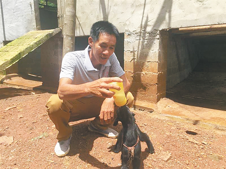 “这只小羊出生时,母羊难产死了,我每天要给它喂几顿奶粉,保证营养。”8月3日,在临高县新盈镇良爱养殖专业合作社,良爱村党支部书记陈世旺一边蹲在地上喂一只刚会走路的小黑山羊,一边笑着对记者说道。