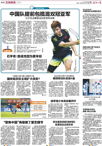 海南日报 文体新闻综合 006 2018-08-051 2018年08月05日 星期日
