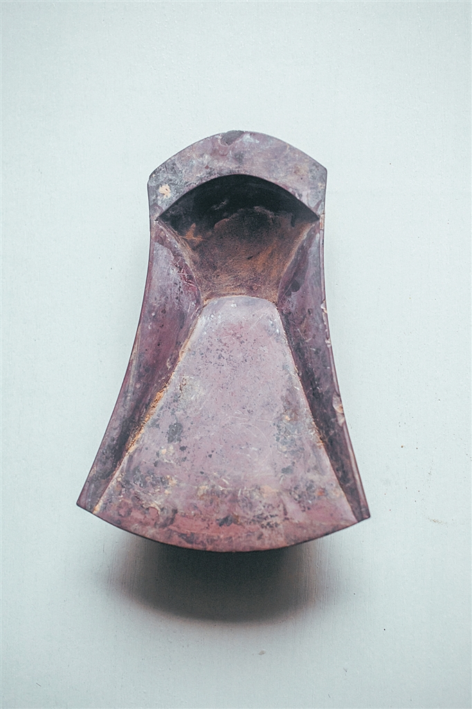 有的是受“天圆地方”说产生的砚式,比如,馆中汉代带研钮的圆饼研、三足虎腿圆砚,其砚台和研钮上圆下方,体现了天圆地方的思想。再比如清代砚台收藏家余甸铭文的一方砚台。该砚纵11.5厘米,横8.7厘米,厚3.3厘米。砚形长方,砚堂开阔平坦,四周砚唇极轻浅,上首左侧深挖一双联方砚池,有微凸池沿。此砚造型别致大方,大气中不失工巧,厚重古朴,尤其是双联池更是天圆地方思想的体现。