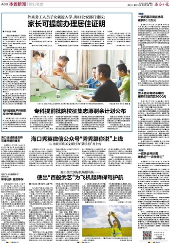 海南日报 本省新闻民生/社会 008 2018-08-081 2018年08月08日 星期三