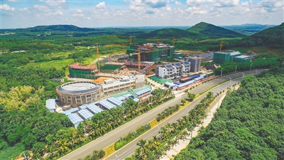 8月8日,儋州市那大镇,海南西部中学项目正在如火如荼施工。