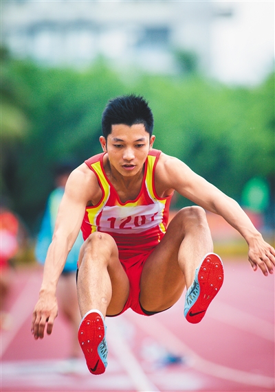 田径比赛12日在文昌中学体育场继续进行,“海南飞人”江亨南在跳远比赛中以7.02米的成绩名列亚军。陵水队的陈俊以7.06米的成绩夺冠。