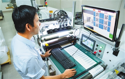 8月16日,海南拍拍看信息技术有限公司的生产基地,技术人员正在采集商品二维码防伪数据。这一枚枚小小的二维码就是商品的个性化“指纹”,是“二维码锯齿特征识别系统”的最新防伪专利技术。