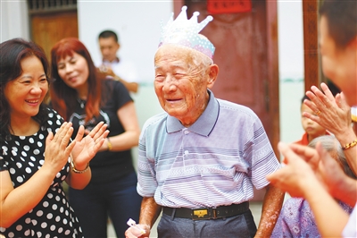 “阿公,提前给您过生日啦!祝您身体健康!”今天下午,文昌市抱罗镇里隆村一座农家小院里,祝福声不断,欢声笑语不停。