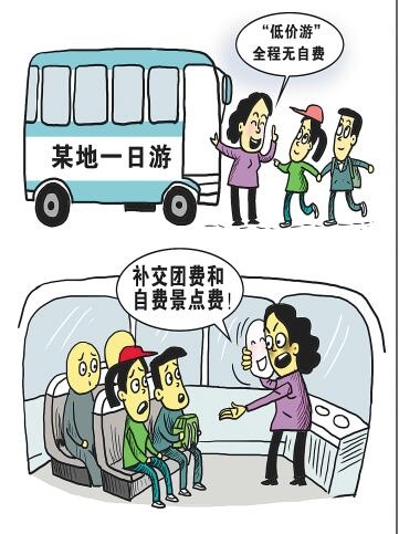 在旅游业发达目的地,“低价团”隐藏的猫腻同样不少:在日前云南昆明警方打掉的一起“低价团”违法案件中,涉事旅行社导游会尽量让游客少睡觉、少进景点,时间都被挤压出来购物,而购物店内产品的销售价格远远高于进价,多的达到100多倍;还有地方的旅行社以不足百元的价格吸引外地游客,在广告中把当地非景点形容为“可免费游览”,目的仍是拉拢游客购物,其中“上钩”的多为老年人。