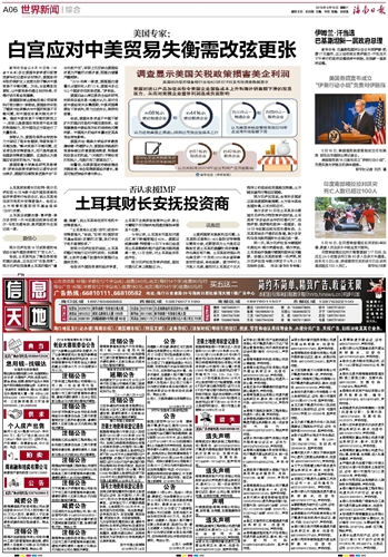 白宫应对中美贸易失衡需改弦更张