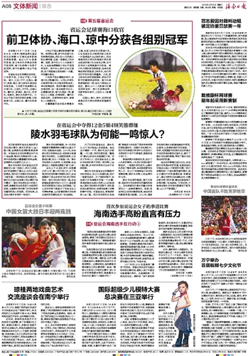 海南日报 文体新闻综合 008 2018-08-181 2018年08月18日 星期六