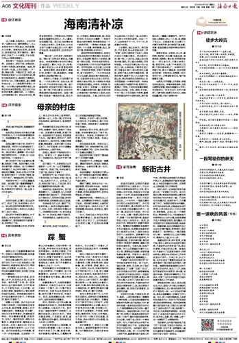 古人消暑,多是茶水。白乐天有诗,“坐酌泠泠水,看煎瑟瑟尘”。(《山泉煎茶有怀》)煎的是尘,消的是暑,亦为快事。海南地处热带,我居海边,虽有海风凉,常怀暑热忧。暑天到时,天成了一个大蒸笼,汗水如洒,灼热让人难得优雅舒心。