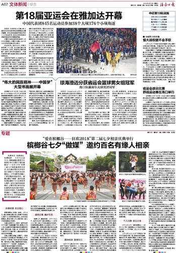 海南日报 文体新闻综合 007 2018-08-191 2018年08月19日 星期日