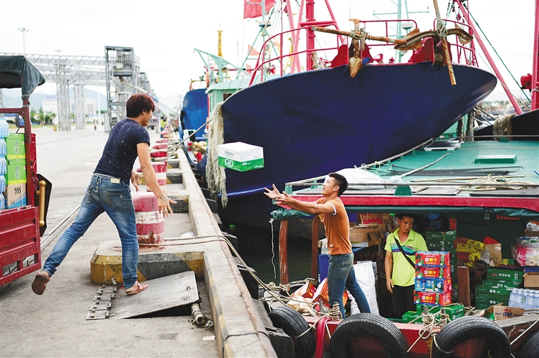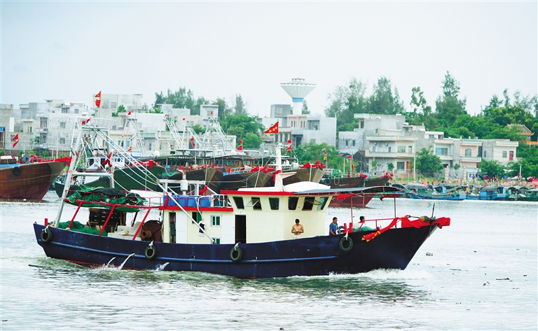 “路漫漫兮其修远,海茫茫兮无尽境。今日千帆竞发于古港,沧海有情,惟祈保佑,风调雨顺,吉祥丰收。祭礼告成,伏维尚飨。”潭门船长卢家炳,在自家的渔船上祈福。8月16日,南海休渔季结束,上百条潭门渔船经过数月休整,千帆竞发,驶向南海。每条渔船在出港之前,都会举行祭海仪式,拜108兄弟公佑平安保丰收。