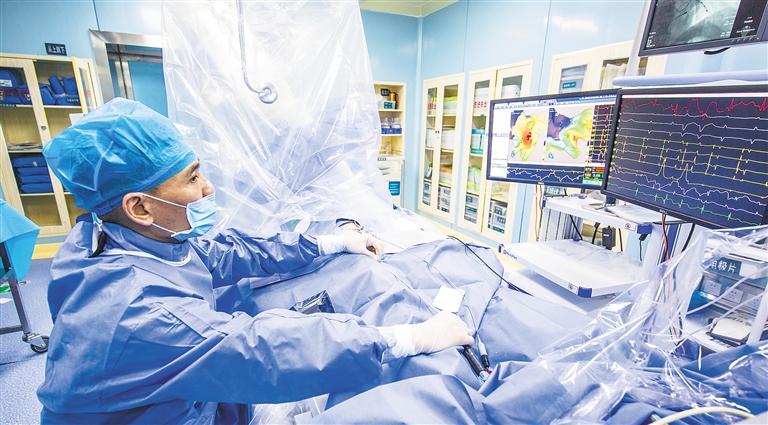 8月18日下午,海南省人民医院主任医师林劲在海南西部中心医院,为一位85岁的男性老人成功实施心脏射频消融术。