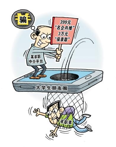 ——诱导大范围传播。通过各种方法利用学生在朋友圈、微信群发布宣传信息,大范围传播他们的求职信息,圈更多学生入局。如“圈里求职”,进群的时候要发;进入后要获得内推名额,也要发。