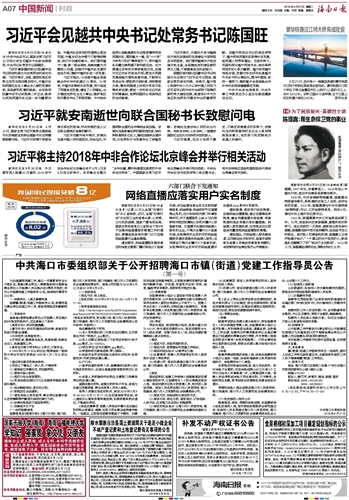 海南日报 中国新闻时政 007 2018-08-211 2018年08月21日 星期二