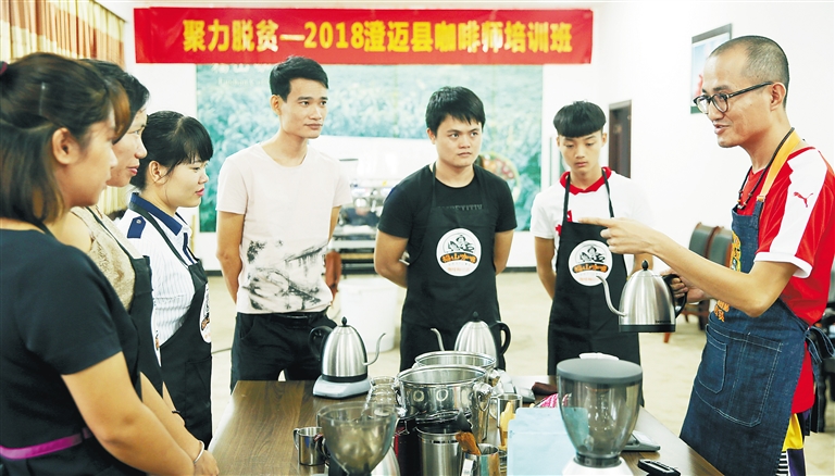 据介绍,2018年澄迈县咖啡师培训班由澄迈县劳动就业局主办,海南福山咖啡职业培训学校承办。目前,该班已经连续举办5届,共培训考核三百余人(含建档立卡贫困户30人),其中约九成学员通过实操考试,获颁咖啡师中级证书。