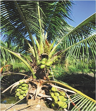 据了解,香水椰子原产于泰国沙威,种植三年可结果。它具有矮种椰子早产、高产的优良特性,而且其椰果的水和肉具有特别怡人的香味,椰水可溶性固形物含量高,是适用于鲜饮的优良椰子品种。