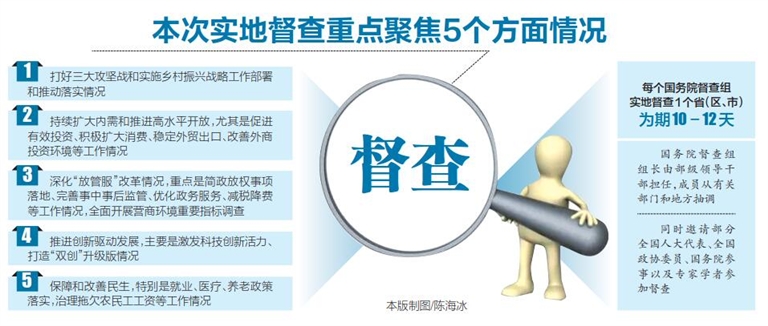 实地督查期间,督查组将坚持问题导向,广泛采取一对一访谈、小范围座谈、明察暗访等方式,深入企业、社区、医院、高校、科研院所、办事大厅等基层一线,认真听取企业家、创业者、科研人员和基层干部群众的意见建议,了解掌握第一手情况。按照“开门搞督查”的工作要求,国务院督查组还将对群众通过“我为大督查提建议”微信小程序、邮政专用信箱反映的突出问题线索有针对性地组织调查核查。对督查发现的典型问题,将约谈负有领导责任、监管责任的负责同志,督促有关方面立行立改,确保整改落实到位。