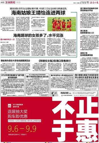 海南日报 文体新闻综合 010 2018-08-231 2018年08月23日 星期四