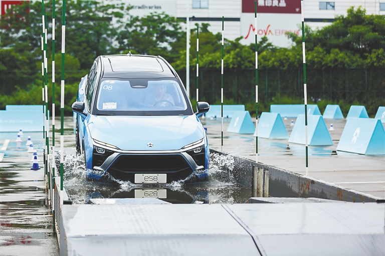 据介绍,此次在海口举行的ES8试驾,通过比利时路和枕木路模拟了城市中遇到的大概率路况,主动空气悬架和动态阻尼的调整为车主带来驾驶舒适感。车辆的NVH性能经过调校后,在经过颠簸路面时,车辆驾驶较为平稳。涉水路测试水坑深度达40厘米,消除了客户对车辆电池防水性能的顾虑。ES8拥有4.4秒百公里加速的成绩,动力强劲。