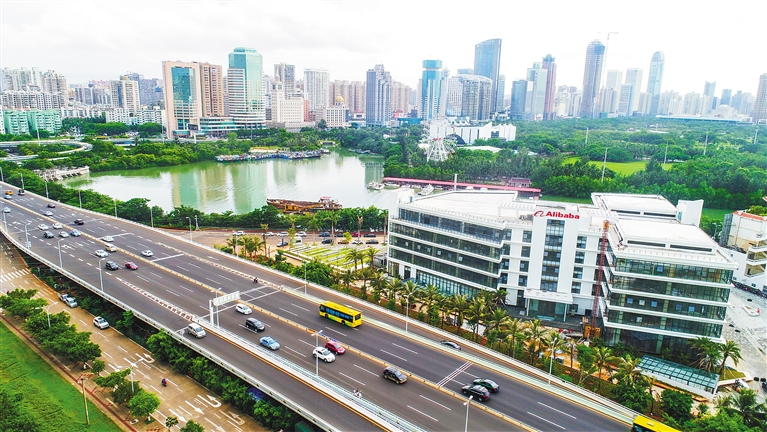 高空俯瞰海口市区,在众多写字楼中,海口复兴城国际离岸创新大厦颇为引人瞩目。目前,阿里巴巴、蚂蚁金服、普华永道、苏宁、映客等国内外知名企业已先后入驻该大厦。