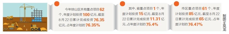 龙昆悦城项目1、2号楼主体已封顶,3号楼正在加快建设;润龙花园项目3栋29层住宅楼已封顶;海南科技职业学院本科校区建设项目,图书馆建设已完工;世界华人华侨交流中心项目,会议中心、宴会厅、会议博览中心主体全部完工;红旗椰海润景项目1号楼、2号楼、综合楼已完工……据了解,今年来,琼山区委、区政府主动适应经济发展新常态,紧紧牵住项目投资“牛鼻子”,千方百计推动项目建设,加快经济发展。