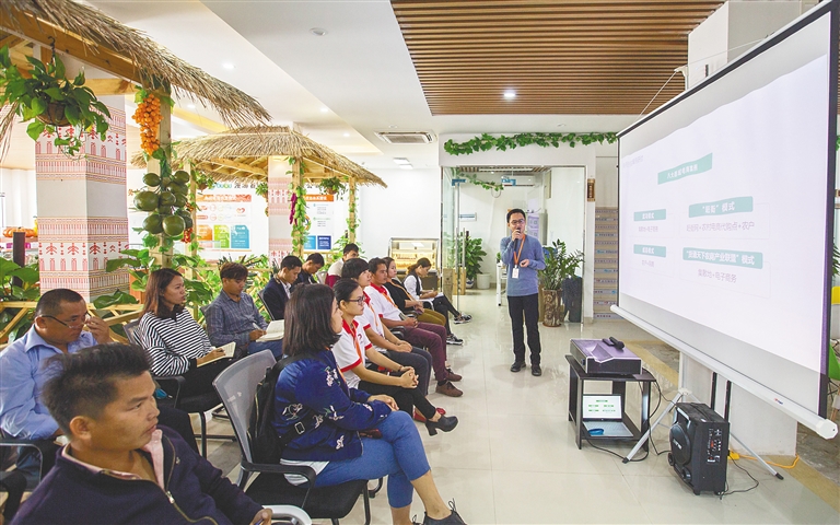 作为陵水扶贫工作重点乡镇,本号镇去年8月引进第三方公司打造并运营全县第一家镇级电商扶贫中心,把发展农村电子商务作为精准扶贫和促农增收的重要抓手,提供农产品销售、品牌打造、人才孵化等服务。