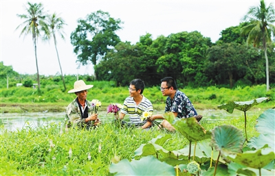 摊开莲花庄园的规划图,杜英团队的“雄心”一览无余:除了莲花,他们已经种有300亩矮椰子,百余亩牛奶果、番石榴、菠萝蜜。“到今年底,我们还将拿出500万元动工建设赏莲栈道,以及对村里废弃的石头屋进行重新修缮,发展民宿。”杜英表示,借由文英村周边大美村、美榔村丰富的旅游资源,文英村农旅结合的未来可期。