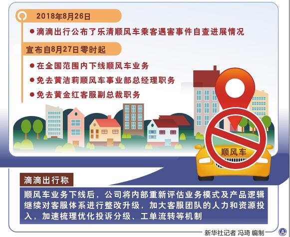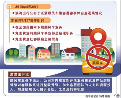 滴滴公司负责人表示,对此次事件深感自责和愧疚,滴滴公司负有不可推卸的重大责任,并承诺:一是自8月27日起,在全国范围内下线顺风车业务,重新评估业务模式;二是9月1日前完成合规化运营工作方案,报送有关部门并接受社会监督;三是落实安全生产责任制,开展安全隐患自查工作,完善隐患监察机制,通过线上、线下手段,查找整改存在的问题;四是整改升级客服体系,加大客服团队的人力和资源投入;五是开拓平台用户紧急情况报警通道,完善配合公安机关证据调取机制。