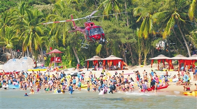 “暑假期间,《非诚勿扰II》中取景拍摄的过江龙索桥日均体验过桥人数约3000多人次,由演员葛优、舒淇在影片中的试婚房日均参观人数近千人次,电影效应带动旅游增速明显。”三亚亚龙湾热带天堂森林公园工作人员黄庆优说。