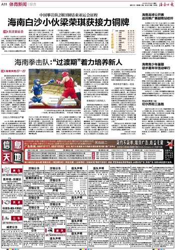 海南日报 体育新闻综合 011 2018-08-281 2018年08月28日 星期二