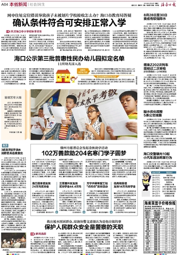 海南日报 本省新闻社会/民生 004 2018-08-281 2018年08月28日 星期二